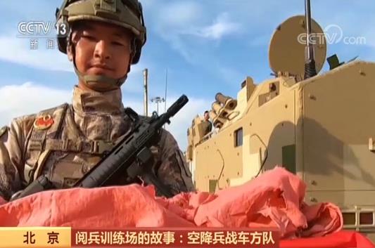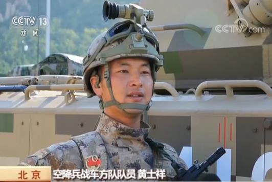 這是空降兵戰(zhàn)車方隊(duì)裝備停放場(chǎng),這位受閱隊(duì)員叫黃士祥??战当陈谩吧细蕩X特功八連”一班班長(zhǎng)。這次受閱,黃士祥還有一項(xiàng)特殊的任務(wù),他的戰(zhàn)車?yán)铮瑢⒊休d著一份與眾不同至高的榮譽(yù)。