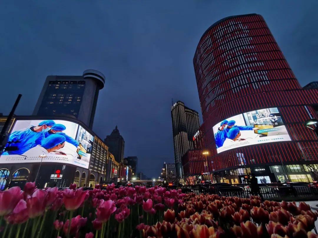 錢塘江兩岸 夜幕下,錢塘江畔, 綿延3公里的恢弘巨幕,流光溢彩、璀璨奪目。 錢塘江兩岸媒體墻滾動播放著 致敬白衣戰(zhàn)士:“敬佑生命、救死扶傷 甘于奉獻(xiàn)、大愛無疆” “待到春暖開花疫情消滅時, 迎接白衣戰(zhàn)士平安凱旋 ” “白衣戰(zhàn)士——最美逆行者” 同樣吸引著城市人的目光。