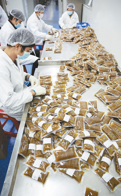 3月2日,湖北武漢一家中藥公司,工人正在為灌裝好的中藥貼上標簽。據(jù)悉,該公司在疫情期間,按照國家衛(wèi)生健康委辦公廳和國家中醫(yī)藥管理局辦公室聯(lián)合印發(fā)的《新型冠狀病毒肺炎診療方案(試行第六版)》中推薦的藥方,為武漢市7家醫(yī)院、10個方艙醫(yī)院等單位生產(chǎn)、煎煮和配送中藥湯劑。 本報記者 張武軍攝
