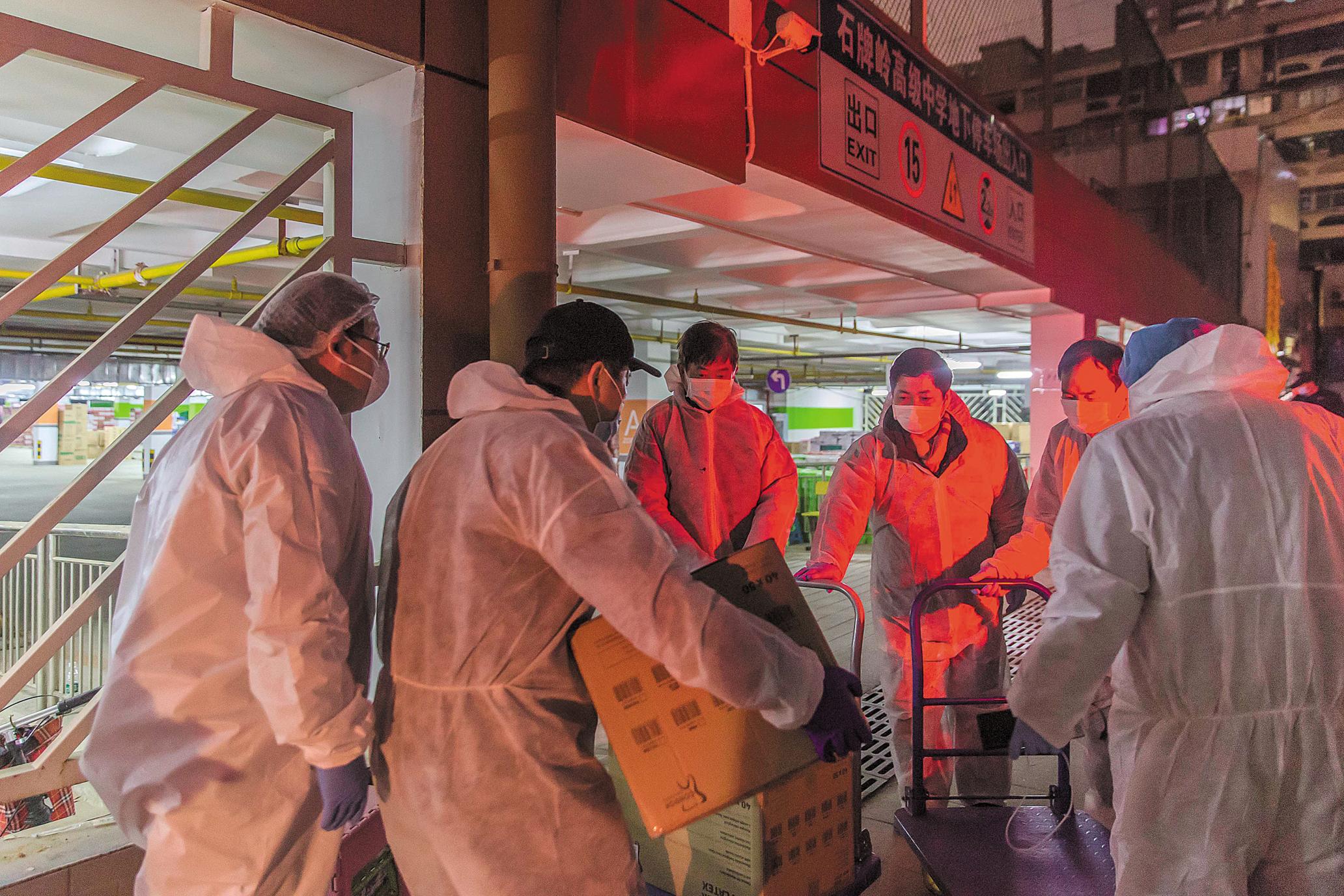 2月11日晚上,江城潛水公司志愿者把捐贈的醫(yī)用口罩、護(hù)目鏡等物資運(yùn)送到洪山區(qū)石牌嶺高級中學(xué)方艙醫(yī)院。