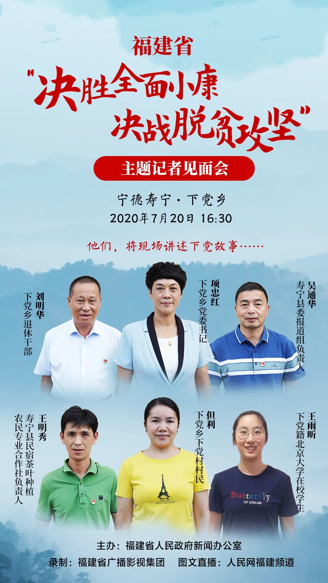 鄉(xiāng)村記者見面會現(xiàn)場。人民網王銑攝 見面會將邀請下黨鄉(xiāng)基層一線的 6位干部群眾代表與記者朋友 以及廣大網友見面 通過講述擺脫貧困的下黨故事 讓大家找到擺脫貧困的中國密碼 看到從脫貧攻堅邁向鄉(xiāng)村振興的光明前景 7月20日16:30 福建省“決勝全面小康,決戰(zhàn)脫貧攻堅” 寧德壽寧·下黨鄉(xiāng)主題記者見面會 要來咯!