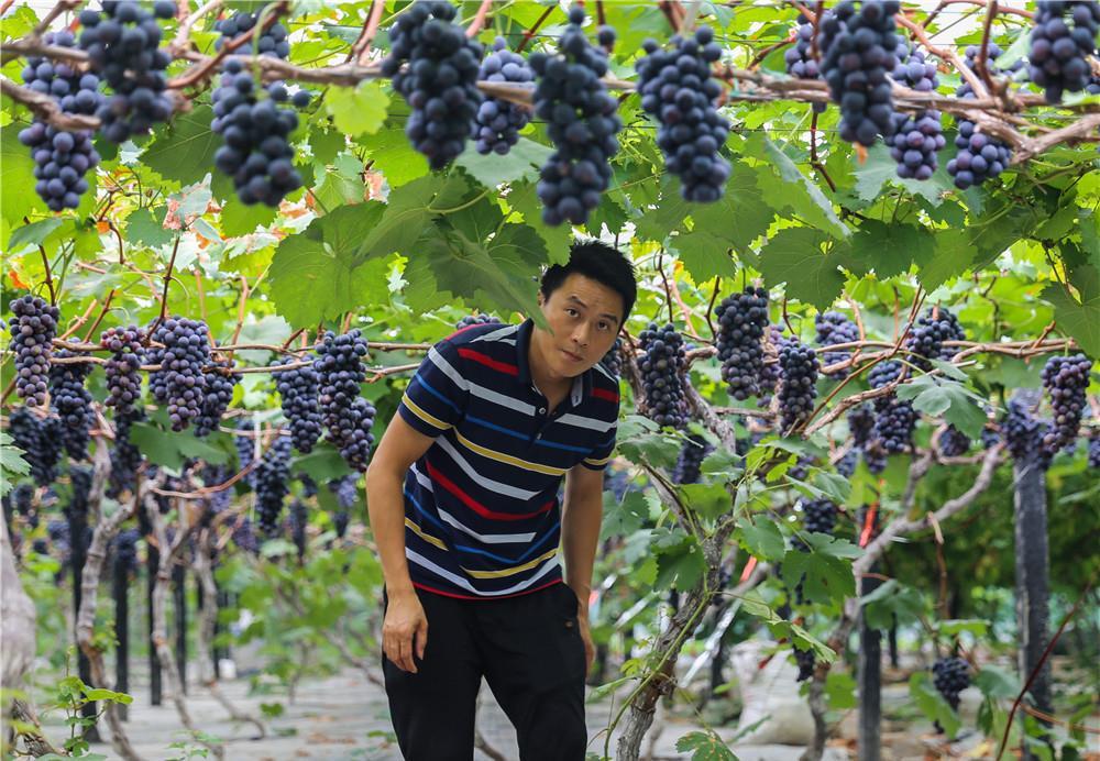 在四川省眉山市彭山區(qū)果園村,張雄在查看葡萄長勢(6月16日攝)。新華社記者 王曦 攝 “種上了好果子,娶來了好妻子,生了個好兒子,買了個好車子,住進了好房子,過上了好日子?!睂τ趶埿蹃碚f,小康生活就是這六個“子”。 十多年前,果園村卻名不副實。全村7000多畝土地,以傳統(tǒng)農(nóng)業(yè)種植為主,村民普遍不富裕。 “我們四處考察,最后敲定葡萄種植作為村里的主導產(chǎn)業(yè)?!惫麍@村黨總支書記李永偉說,從最初試種2畝,到如今的5200畝,小葡萄成了增收奔小康的大產(chǎn)業(yè),去年村民人均收入超過3.1萬元。