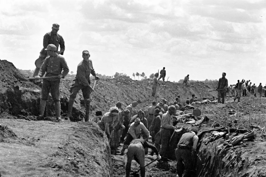 四平保衛(wèi)戰(zhàn),戰(zhàn)士在修工事(資料照片 新華社發(fā))