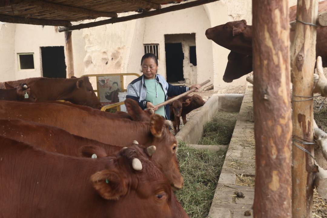 在甘肅省平?jīng)鍪谐缧趴h錦屏鎮(zhèn),當(dāng)?shù)卣畬U棄不用的窯洞改造成牛舍,配套修建了堆糞場、草料場、消毒室、防疫室等設(shè)施,推行公司養(yǎng)、大戶養(yǎng)、群眾養(yǎng)的模式,標(biāo)準(zhǔn)化生產(chǎn)。截至目前,崇信縣已建成窯洞養(yǎng)牛示范帶5個。 薛家灣村貧困戶朱海萍,通過政府幫扶,用精準(zhǔn)扶貧貸款50000元,先后購買了10頭崇信紅牛。并積極參加縣鎮(zhèn)組織的養(yǎng)殖專業(yè)培訓(xùn),成為了養(yǎng)牛能手,年出欄紅牛12頭,年收入十萬余元。如今,朱海萍加入紅牛合作社,以“租借”的方式引進了64頭基礎(chǔ)母牛,5頭牛犢。幫合作社代養(yǎng)69頭紅牛。經(jīng)過7個月左右的育肥后,一頭??蓭?萬元左右的收入。(攝影 趙富生) |