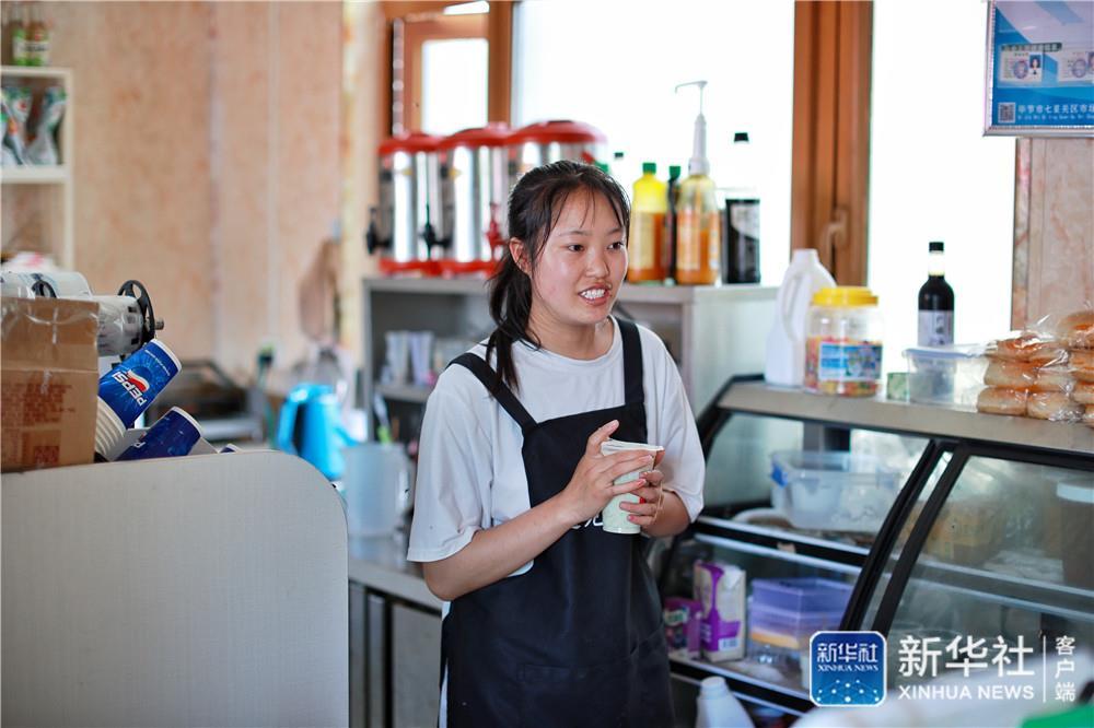↑劉林在柏楊林易地扶貧搬遷安置點的一家奶茶店打工,她一個月可以掙2000多元(8月3日攝)。劉續(xù) 攝
