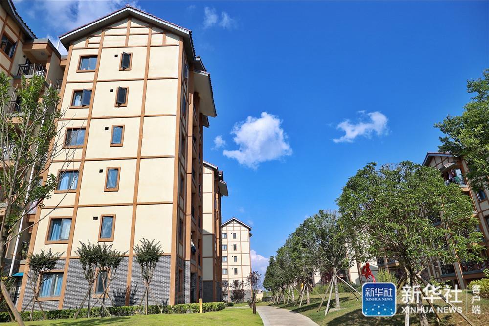 ↑柏楊林易地扶貧搬遷安置點環(huán)境優(yōu)美(8月3日攝)。劉續(xù) 攝