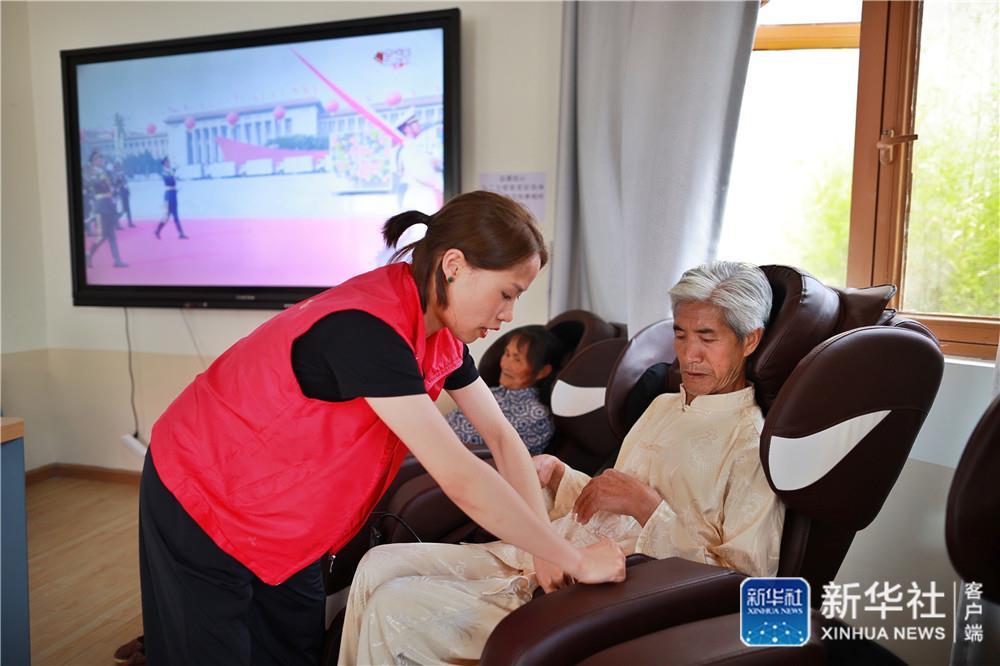 ↑老人在柏楊林易地扶貧搬遷安置點長幼日間托養(yǎng)照料中心內(nèi)進行按摩放松(8月3日攝)。劉續(xù) 攝