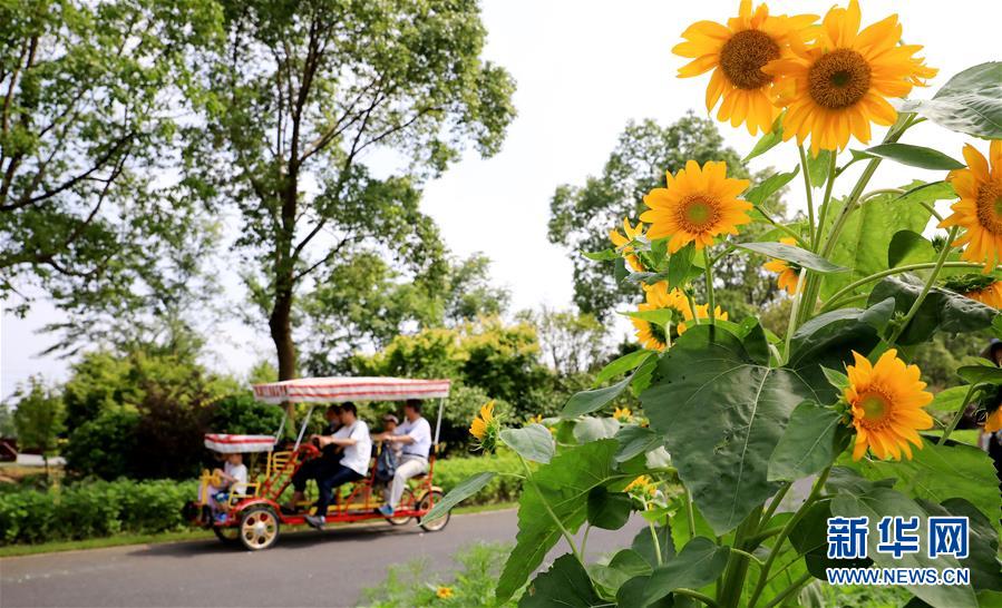 游客在上海市金山區(qū)的花開海上生態(tài)園游玩(6月26日攝)。新華社記者 方喆 攝