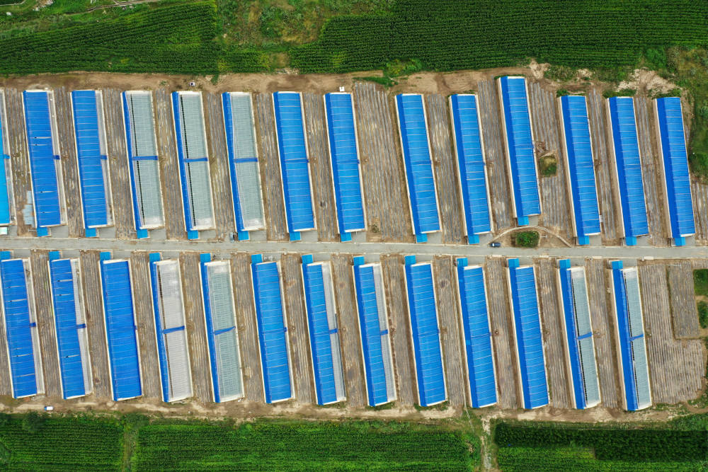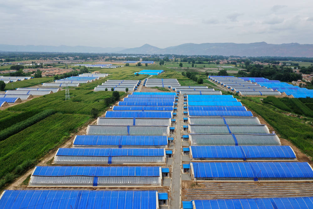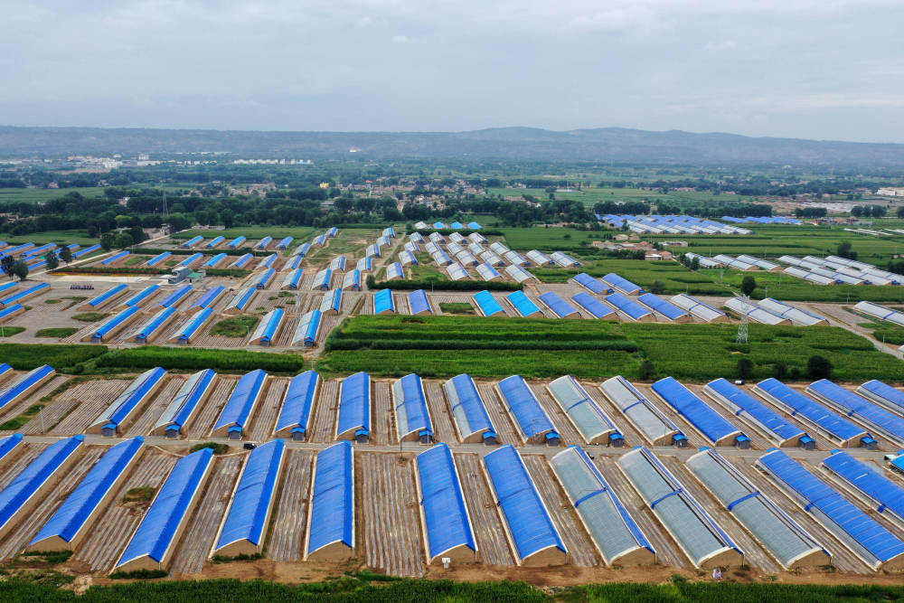 這是8月11日拍攝的甘肅省臨夏回族自治州臨夏縣易地扶貧搬遷后續(xù)產(chǎn)業(yè)發(fā)展日光溫室建設(shè)項目(無人機照片)。新華社記者 邢廣利 攝 |