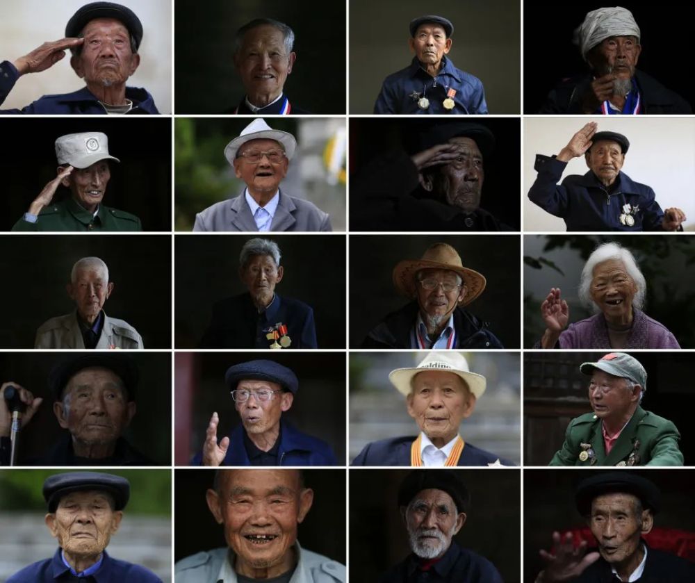 20位中國遠征軍滇西抗戰(zhàn)老兵的拼版圖片。新華社發(fā)(田衛(wèi)濤 攝) 英雄受人敬仰 奮斗自有來人
