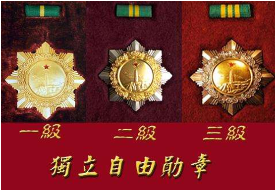 “獨立自由勛章”是授予中國人民解放軍在抗日戰(zhàn)爭時期著有功勛人員的一種證章,共分為三級,分別為金質(zhì)、金銀質(zhì)和銀質(zhì)。獨立自由勛章圖案外形為八角星, 中間為革命圣地延安寶塔山,寶塔后有流云紋飾,上方鐫有一顆代表中國共產(chǎn)黨的紅五星,四周環(huán)鐫祥云紋飾,象征在中國共產(chǎn)黨的領(lǐng)導(dǎo)下,中國人民抗日戰(zhàn)爭取得了最后的勝利。勛章的背面均印有編號與中華人民共和國勛章的名稱、級別、年份等字樣。