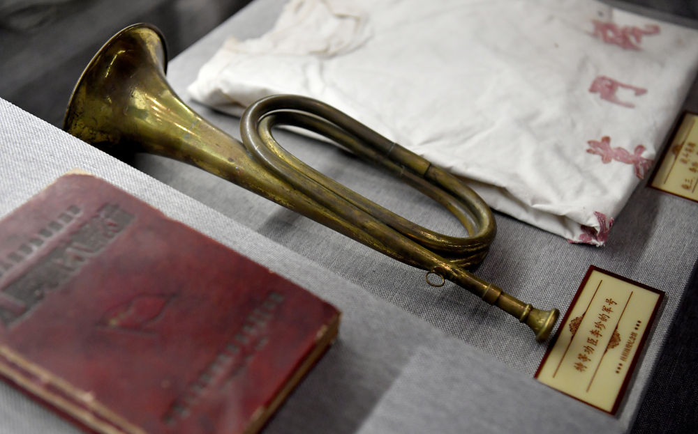 陜西眉縣扶眉戰(zhàn)役紀(jì)念館里展出的特等功臣李珍的軍號。(新華社記者劉瀟2021年1月28日攝) “從5月26日到6月27日,毛澤東先后多次致電彭德懷,與其商討關(guān)中決戰(zhàn)事宜,最終確定了‘鉗馬打胡、先胡后馬’的戰(zhàn)術(shù)?!睂氹u市委黨史研究室原調(diào)研員李洛發(fā)說。 從扶眉戰(zhàn)役紀(jì)念館陳列的一封封電報中,仍可感受到當(dāng)年大戰(zhàn)前的緊張氣氛。 戰(zhàn)前,18兵團(tuán)沿隴海鐵路、咸陽-鳳翔公路從東向西推進(jìn),1兵團(tuán)在渭河南岸布防,2兵團(tuán)從北路急行軍進(jìn)入岐山,并派出第4軍守住西大門,防止敵軍向西逃竄,從而形成對敵三面夾擊之勢。 7月10日,扶眉戰(zhàn)役正式打響。渭河兩岸,一時硝煙彌漫。 7月12日,一野2兵團(tuán)、18兵團(tuán)向被壓縮在渭河北岸的國民黨軍發(fā)起總攻,經(jīng)過5小時激戰(zhàn),殲敵大部,敵軍亂成一團(tuán),涉水突圍。正逢渭河水暴漲,敵軍大部分溺水而亡。逃上南岸的8000余人,又落入1兵團(tuán)布設(shè)下的天羅地網(wǎng)。 7月13日,岐山、鳳翔相繼解放。 7月14日凌晨,寶雞解放。 至此,扶眉戰(zhàn)役勝利告捷。