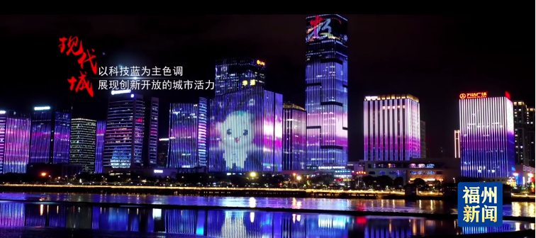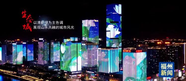 祥龍騰空?qǐng)D案 超燃的無人機(jī)表演 既是為即將在福州舉辦的 數(shù)字峰會(huì)、數(shù)博會(huì)打call 也是通過難得一見的演出 點(diǎn)贊數(shù)字福州建設(shè) 點(diǎn)贊福州在文化傳承保護(hù) 及宜居宜業(yè)城市打造等方面 取得的巨大成就 兩岸華燈伴“千機(jī)” 絢麗閩江盡顯榕城夜色之美 1500架無人機(jī) 帶來精彩表演的同時(shí) 在閩江兩岸 福州地標(biāo)景觀——樓體燈光秀 同步上演 共同描繪 “有福之州 幸福之城”美麗畫卷 據(jù)了解,海峽金融商務(wù)區(qū)樓體燈光秀,涉及閩江南北岸22棟樓體、一座跨江大橋(鰲峰大橋),安裝了80多萬顆像素?zé)?,形?70度視角,并采用裸眼3D技術(shù),在一定角度上呈現(xiàn)立體畫面效果。 今晚的燈光秀 以《有福之州》為題 分為“生態(tài)城”“幸福城” “現(xiàn)代城”“百年慶”四個(gè)篇章 根據(jù)主題搭配相應(yīng)的主色調(diào) 并配合不同風(fēng)格的背景音樂 展示福州建設(shè)的巨大成就 以此慶祝中國共產(chǎn)黨成立100周年 Part 1 “生態(tài)城”篇章