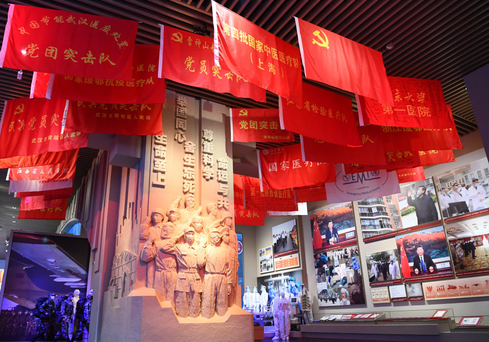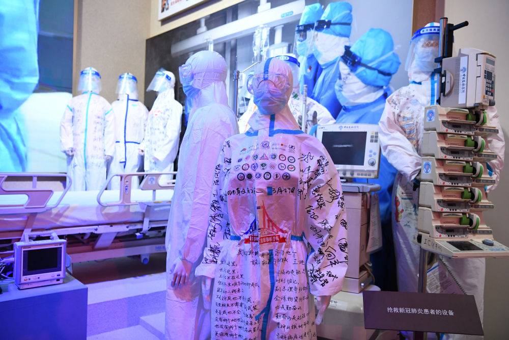 ↑抗擊新冠肺炎疫情的部分展覽內(nèi)容。