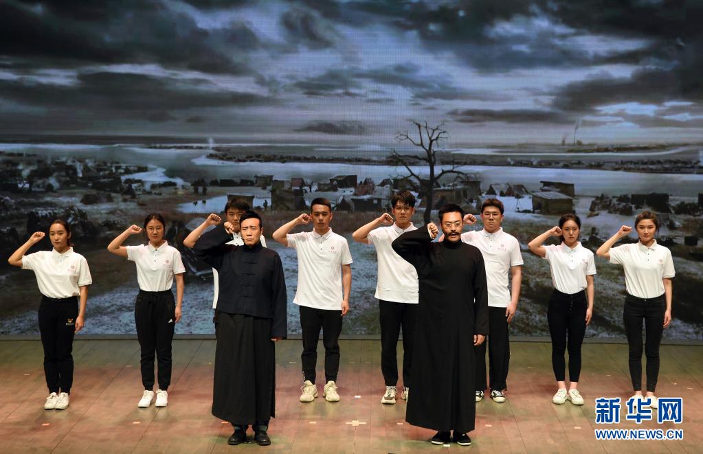 電視劇《覺醒年代》主創(chuàng)團(tuán)隊(duì)走進(jìn)北京大學(xué),劇中主要演員與北大學(xué)生同臺(tái)演出(4月20日攝)。新華社記者 任超 攝