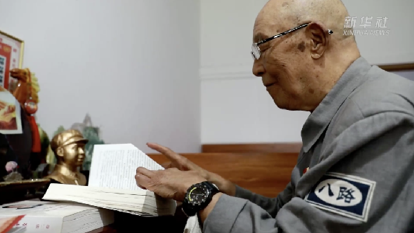 (余新元在學習黨的方針政策) 如今,由于年齡原因不能外出做報告,余新元依然沒有停止自己踐行信念的步伐。98歲高齡的余新元堅持每天學習黨的方針政策,堅持弘揚雷鋒精神,在家里為黨員群眾講黨史、授黨課。