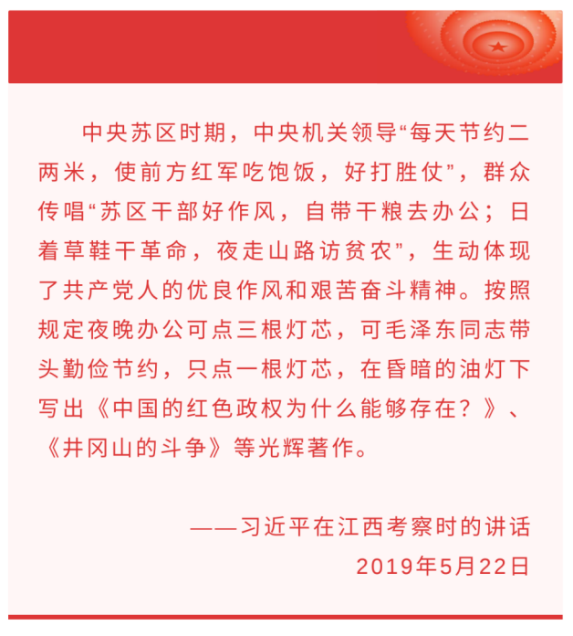這是中國共產黨百年征程中一個熠熠閃光的時空坐標—— 1927年10月—1930年2月,江西井岡山。 在這兩年零四個月的斗爭中,中國共產黨人點燃了“農村包圍城市、武裝奪取政權”的星星之火,也點亮了“堅定信念、艱苦奮斗,實事求是、敢闖新路,依靠群眾、勇于勝利”的精神之光。 “井岡山的人哎,抬頭望哎,八角樓的燈光,照四方。”八角樓在當地百姓心中是一塊“圣地”。 當年,在八角樓一盞油燈下,毛澤東寫下了《中國的紅色政權為什么能夠存在》《井岡山的斗爭》兩篇光輝著作,提出了“工農武裝割據”的光輝思想,在茫茫黑夜里照亮了中國革命勝利的道路。 以史為鑒、開創(chuàng)未來 習近平總書記強調 全黨同志要做到 學史明理、學史增信 學史崇德、學史力行 學黨史、悟思想 辦實事、開新局 以昂揚姿態(tài)奮力開啟 全面建設社會主義現代化國家新征程 監(jiān)制:孫承斌、陳二厚 策劃:劉 潔、鄭 衛(wèi)、蘭紅光、賴向東、王建華 統籌:費茂華、周大慶 文字:王 宇、秦 宏、劉 健、李興文、郭 強、余賢紅 編輯:李夢馨、雒 圓、韓曉雨、劉金海、張善臣 |