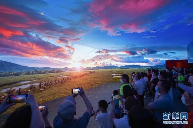 7月15日,觀眾在中國共產(chǎn)黨歷史展覽館“‘不忘初心、牢記使命’中國共產(chǎn)黨歷史展覽”上觀看紅軍長征過草地場景視頻。新華社記者 陳曄華 攝