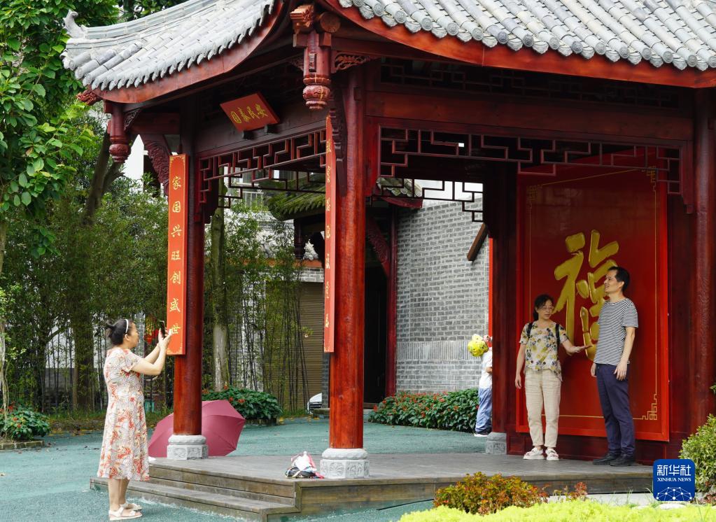 游客在成都市郫都區(qū)戰(zhàn)旗村拍照留念(8月8日攝)。新華社發(fā)(郭芯屹 攝) “火車跑得快,全靠車頭帶” 8月的戰(zhàn)旗村游人如織,白墻青瓦的民居綴在公園般的村莊中,村前廣場(chǎng)旁一列蒸汽機(jī)車的車頭格外顯眼?;疖囶^取名“戰(zhàn)旗號(hào)”,在村里人眼里,它不僅是裝飾,更是戰(zhàn)旗村在黨組織引領(lǐng)下接力奮斗的象征。 從大力發(fā)展經(jīng)濟(jì)創(chuàng)辦村集體企業(yè),到發(fā)展農(nóng)產(chǎn)品加工,探索產(chǎn)業(yè)化經(jīng)營(yíng)模式;從明晰集體資產(chǎn)產(chǎn)權(quán),開始土地規(guī)模化流轉(zhuǎn)經(jīng)營(yíng),到完成全村土地權(quán)屬調(diào)整,成功敲響四川土地入市改革第一槌……戰(zhàn)旗村發(fā)展一路高歌。 “火車跑得快,全靠車頭帶”,在戰(zhàn)旗村的發(fā)展歷程中,“火車頭”是黨組織,而跑得快的關(guān)鍵便是始終抓住“黨建引領(lǐng)”不放松。 “在戰(zhàn)旗村,黨員們要經(jīng)常問自己:入黨為了什么?作為黨員做了什么?作為合格黨員示范帶動(dòng)了什么?”戰(zhàn)旗村黨委書記高德敏說,“在戰(zhàn)旗村,每一位黨員都要發(fā)揮先鋒模范作用,要帶著大家干,干給大家看?!?/p> 近年來,一些年輕黨員紛紛回到家鄉(xiāng),成為景區(qū)和產(chǎn)業(yè)工作人員?!澳贻p黨員參與鄉(xiāng)村治理至關(guān)重要,他們更熟悉了解情況,也是村里為未來培養(yǎng)的人才。”高德敏說,戰(zhàn)旗村165名黨員主動(dòng)帶頭領(lǐng)辦項(xiàng)目、參與村務(wù),贏得了村民信賴。 高德敏介紹,戰(zhàn)旗村黨委始終抓住“黨建引領(lǐng)”這個(gè)關(guān)鍵,提出七個(gè)“滿覆蓋”戰(zhàn)旗黨建工作法,建立黨員“三問三亮六帶頭”工作機(jī)制,確保黨員“有知識(shí),懂業(yè)務(wù)”,實(shí)現(xiàn)了“建強(qiáng)戰(zhàn)斗堡壘,引領(lǐng)改革興村,引領(lǐng)生態(tài)宜居,引領(lǐng)產(chǎn)業(yè)富民,引領(lǐng)鄉(xiāng)風(fēng)文明,引領(lǐng)服務(wù)便民”的“一強(qiáng)五引領(lǐng)”。