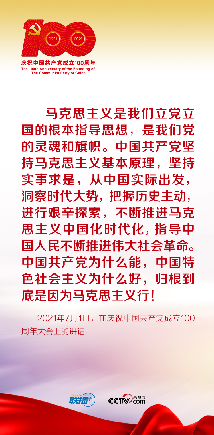 “馬克思主義是我們立黨立國的根本指導(dǎo)思想,是我們黨的靈魂和旗幟?!绷?xí)近平總書記在慶祝中國共產(chǎn)黨成立100周年大會上指出,中國共產(chǎn)黨為什么能,中國特色社會主義為什么好,歸根到底是因?yàn)轳R克思主義行!
