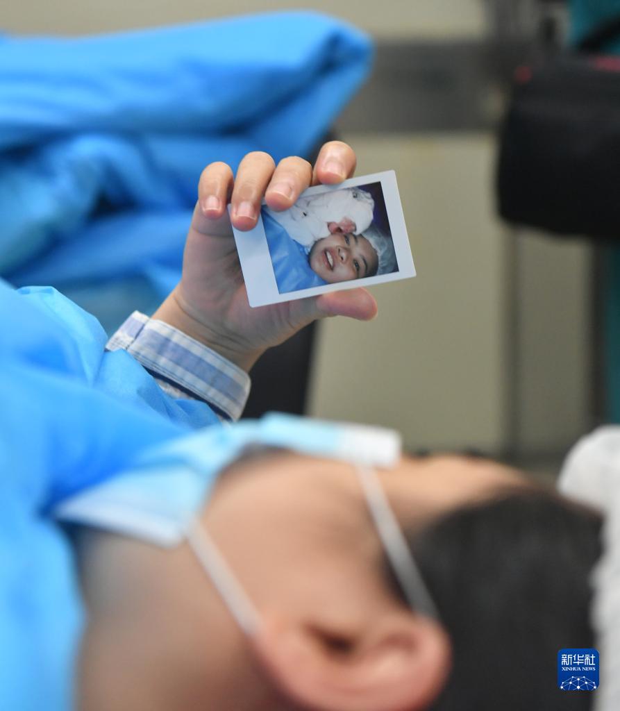 2020年6月1日,在湖北武漢,彭銀華的妻子鐘欣在看自己與女兒的合影。新華社發(fā)(王永勝 攝)