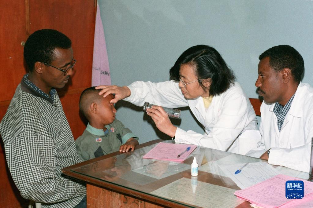 1998年,中國醫(yī)療隊隊長曹曉燕和當(dāng)?shù)蒯t(yī)生一起給眼疾患兒檢查。由河南省派出的中國第9批援埃塞醫(yī)療隊于1996年8月赴埃塞俄比亞工作,他們以崇高的醫(yī)德、精湛的醫(yī)術(shù)贏得了當(dāng)?shù)厝嗣竦馁澴u。新華社記者 陳才林 攝 50年來,中國人民持續(xù)奮斗,譜寫立己達(dá)人、兼善天下的時代篇章—— 全面建成小康社會,顯著縮小世界貧困人口版圖,減貧人口占同期全球減貧人口70%以上;連續(xù)多年對世界經(jīng)濟增長的平均貢獻(xiàn)率超過30%,成為世界經(jīng)濟增長的重要引擎……創(chuàng)造自身發(fā)展奇跡的同時,中國也在影響和改變世界,讓更多發(fā)展中國家重拾信心,探尋適合本國國情的現(xiàn)代化路徑。