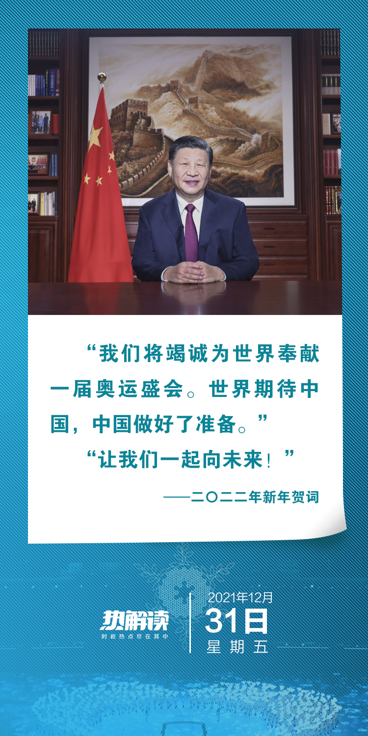 辭舊迎新之際,習(xí)近平主席在二〇二二年新年賀詞中真誠呼吁全世界攜手共創(chuàng)美好未來,同時也為北京2022年冬奧會和冬殘奧會的主題口號“一起向未來”注入深刻內(nèi)涵。