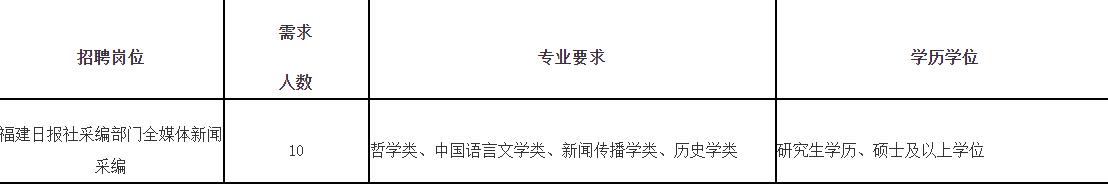 《福建日報》為中共福建省委機關(guān)報,創(chuàng)辦于1949年8月25日,發(fā)行量達30萬份,人均發(fā)行量位居全國省級黨報前列,連續(xù)多年獲評全國“百強報紙”。因工作需要,2022年擬向社會公開招聘編制內(nèi)全媒體新聞采編人員10名。根據(jù)《福建省省屬事業(yè)單位公開招聘工作人員考試暫行辦法》的規(guī)定,制定具體方案如下: