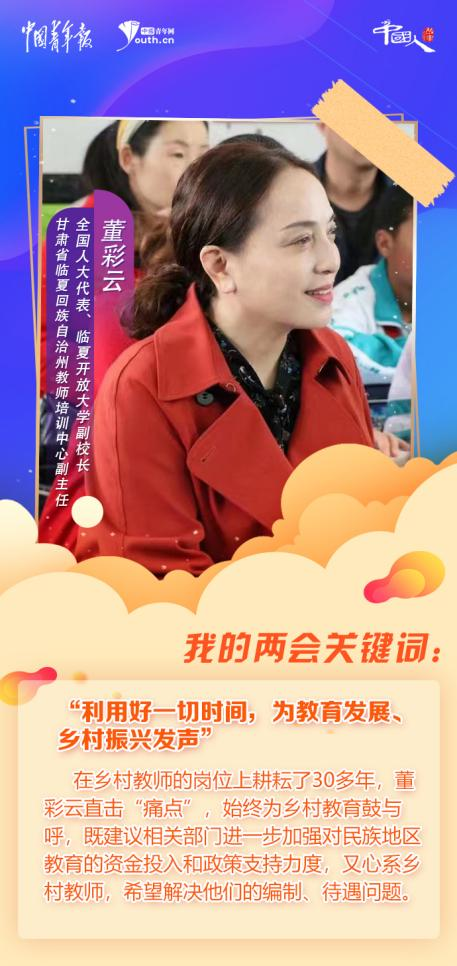 該州所轄八縣市曾是六盤山集中連片特困片區(qū)扶貧開發(fā)重點(diǎn)縣,教育基礎(chǔ)條件薄弱、教育教學(xué)質(zhì)量不高、高層次師資力量匱乏。在鄉(xiāng)村教師的崗位上耕耘了30多年,董彩云直擊“痛點(diǎn)”,始終為鄉(xiāng)村教育鼓與呼,既建議相關(guān)部門進(jìn)一步加強(qiáng)對(duì)民族地區(qū)教育的資金投入和政策支持力度,又心系鄉(xiāng)村教師,希望解決他們的編制、待遇問題。