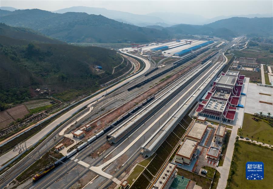 2023年2月22日拍攝的中老鐵路磨憨站(無人機(jī)照片)。新華社記者 江文耀 攝