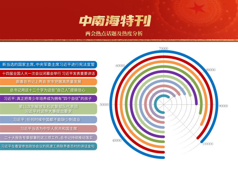3月,世界目光,聚焦北京。近3000名中外記者采訪報(bào)道全國(guó)兩會(huì)。央視網(wǎng)“智聞”系統(tǒng)提取分析兩會(huì)期間全網(wǎng)時(shí)政新聞熱點(diǎn)顯示,習(xí)近平總書記的兩會(huì)關(guān)切吸引全網(wǎng)目光,新征程領(lǐng)路人的人民情懷成為網(wǎng)友“兩會(huì)印象”最深刻的主題之一。