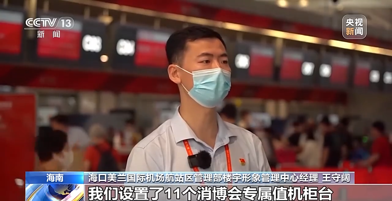 ??诿捞m國際機(jī)場航站區(qū)管理部樓宇形象管理中心經(jīng)理 王守闊:我們設(shè)置了11個(gè)消博會專屬值機(jī)柜臺和4條專屬安檢通道,有效分流參會嘉賓和普通旅客,大幅提升出行效率。