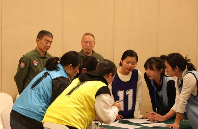 2023年4月4日,參加海軍招飛選拔的學(xué)生在心理選拔環(huán)節(jié)討論發(fā)言,海軍飛行人才心理選拔專家對參檢學(xué)生進行活動觀察。