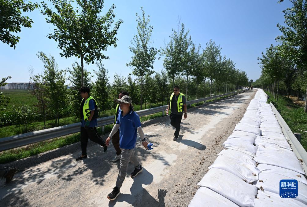 目前,大清河洪水紅色預(yù)警仍在生效中,天津市行洪工作持續(xù)進(jìn)行。8月15日,在位于天津市靜海區(qū)臺(tái)頭鎮(zhèn)清北地區(qū)北圍埝上,由應(yīng)急搶險(xiǎn)專(zhuān)家、基層黨員干部等組成的應(yīng)急搶險(xiǎn)隊(duì)頂著烈日巡護(hù)、排查堤壩風(fēng)險(xiǎn),確保洪水順利下泄和人民群眾生命財(cái)產(chǎn)安全。