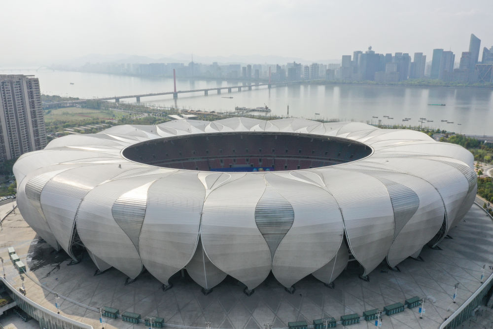 這是2022年3月30日拍攝的杭州奧體中心體育場(無人機照片)。新華社記者 黃宗治 攝