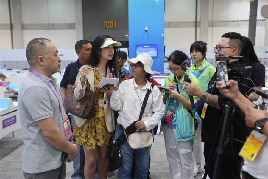 “參訪主媒體中心,讓我深切地感受到了中國的成功。”耶乃梭Ye Naing Soe對中文很感興趣,日常也會關(guān)注中國的新聞。他談及此前看到中國報道中的一句話,“青年是一個國家的未來,國家的責(zé)任由青年來承擔(dān)?!薄敖裉靵淼竭@里看到很多參與服務(wù)的都是青年人,很有活力。我相信杭州亞運(yùn)會也會非常成功,就像杭州亞運(yùn)會的標(biāo)語一樣,所有的亞洲國家會一起心向未來。”