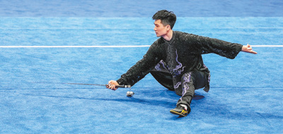 9月25日,武術(shù)男子太極拳太極劍全能決賽,中國體育代表團選手高浩楠在比賽中。 本報記者 厲衍飛攝