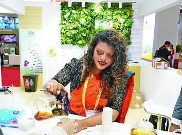 11月6日,工作人員為觀眾介紹斯里蘭卡特色茶飲。光明網(wǎng)記者王若昕攝/光明圖片
