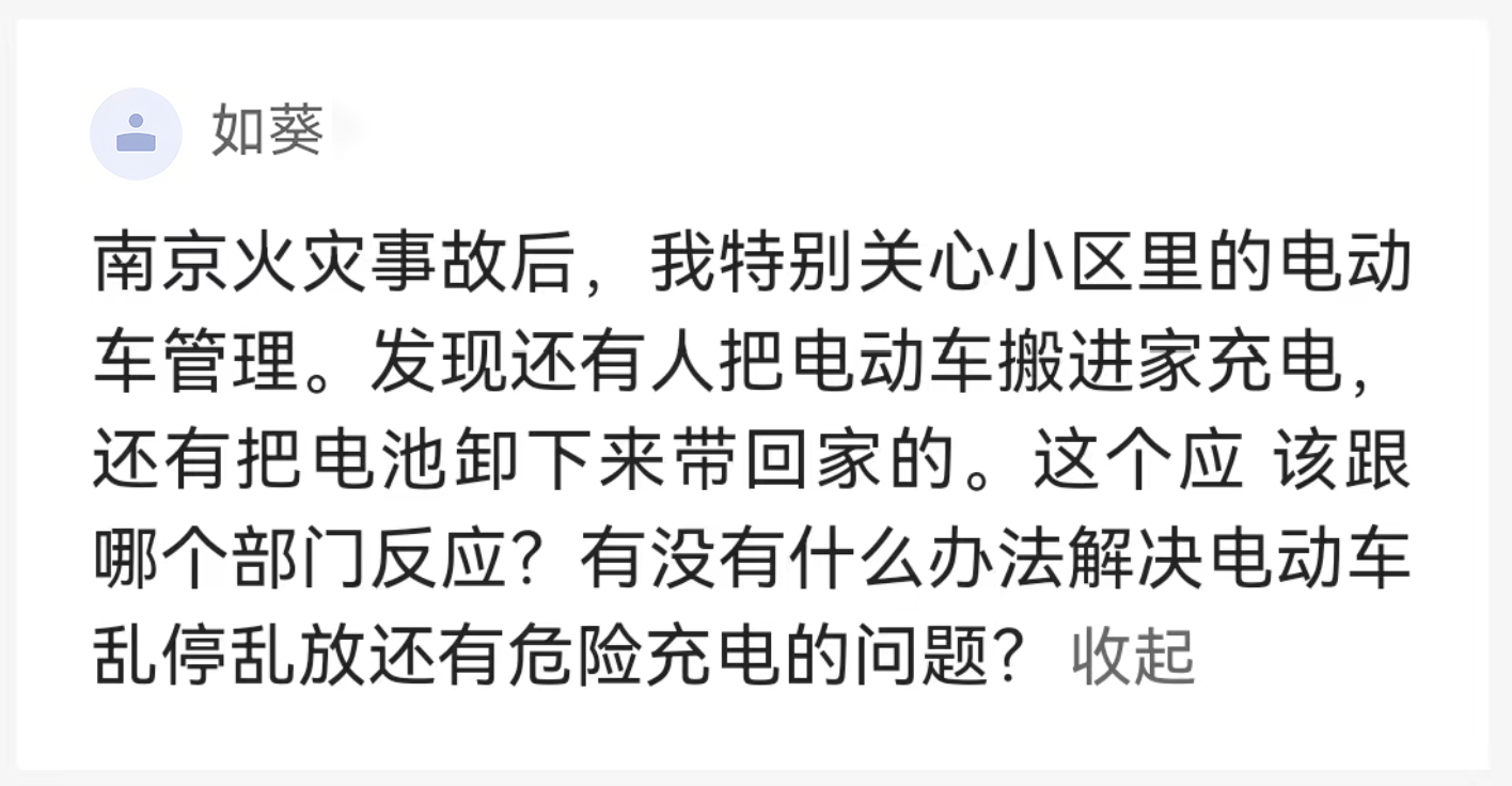 如何解決電動(dòng)車(chē)的停放和充電問(wèn)題?李連祥建議,首先當(dāng)?shù)卣雠_(tái)相關(guān)的政策,設(shè)置電動(dòng)車(chē)停放區(qū)域和電池充電設(shè)備。第二,物業(yè)要對(duì)小區(qū)進(jìn)行整體規(guī)劃,合理規(guī)劃出電動(dòng)車(chē)停放區(qū)域和充電樁設(shè)置區(qū)域。
