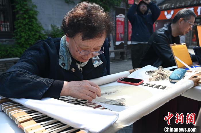 圖為國家級非物質(zhì)文化遺產(chǎn)代表性項(xiàng)目蘇繡(揚(yáng)州刺繡)代表性傳承人吳曉平在揚(yáng)州東關(guān)歷史文化街區(qū)展示技藝。張蔚然 攝