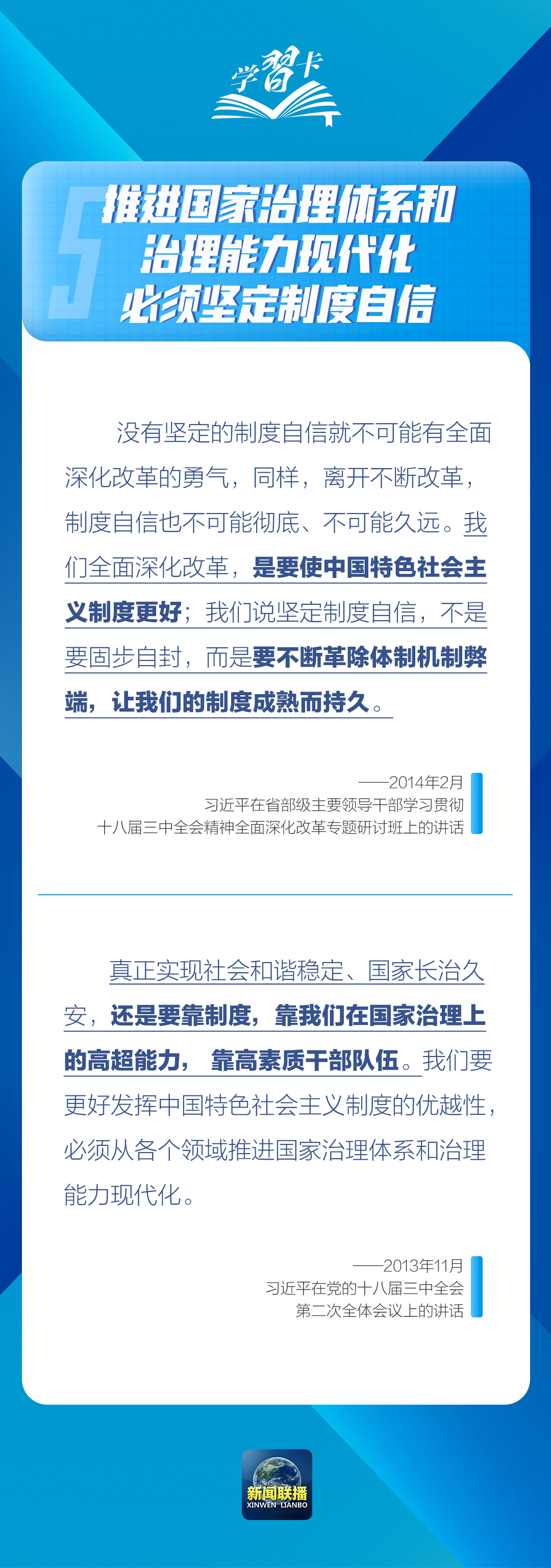 國(guó)家治理體系和治理能力現(xiàn)代化,是一個(gè)國(guó)家現(xiàn)代化的重要標(biāo)志。新時(shí)代全面深化改革開(kāi)放,就要使中國(guó)特色社會(huì)主義制度更加成熟更加定型,推進(jìn)國(guó)家治理體系和治理能力現(xiàn)代化。