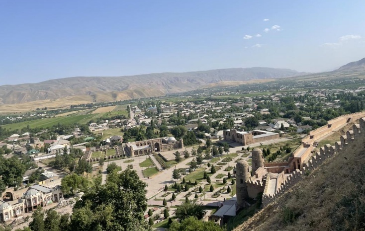 位于塔吉克斯坦杜尚別西北的吉薩爾古城,有著3000多年歷史。有研究認(rèn)為,張騫出使大宛回程途中曾經(jīng)過(guò)此地。圖為從吉薩爾古城城墻俯瞰城門與市鎮(zhèn)。本報(bào)記者 曲頌 攝