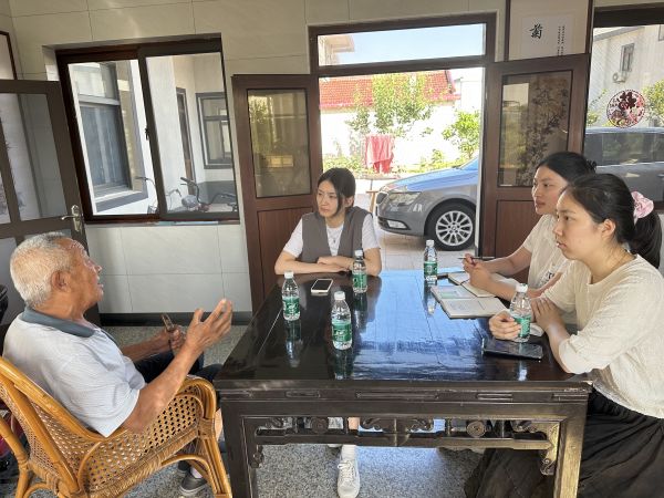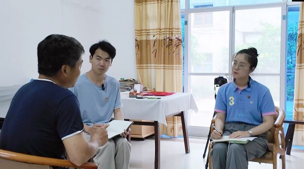 選調(diào)生弋鵬宇、方青清、周晨樂與原瀛東村黨支部書記陸文忠交流
