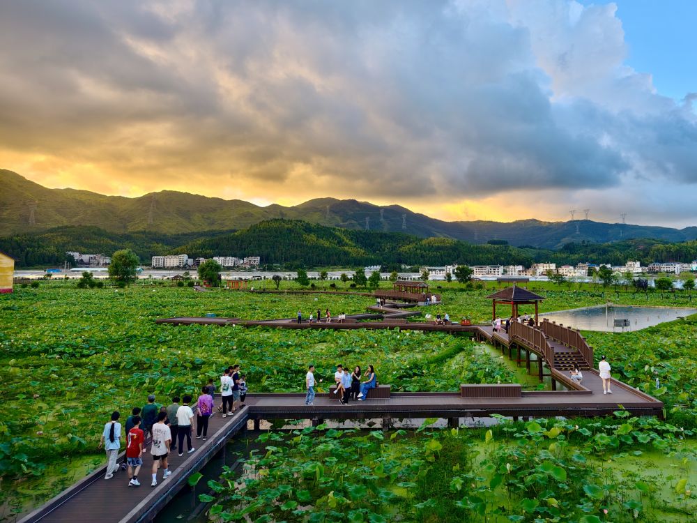 建成百畝荷塘、水幕光影秀等