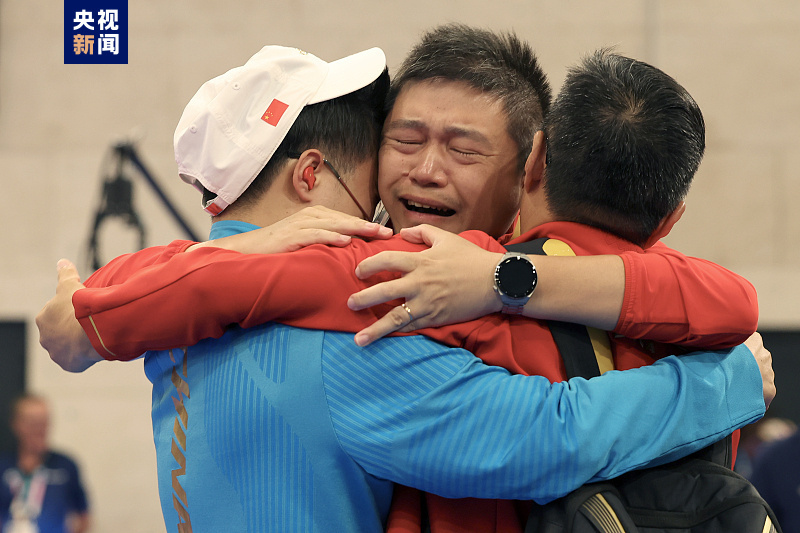 △王鑫杰 老將李越宏三戰(zhàn)奧運(yùn)終摘金,圓夢“大滿貫”,更是實現(xiàn)了中國隊在該小項上的金牌零的突破。本場比賽結(jié)束后他激動落淚,與教練緊緊擁抱。