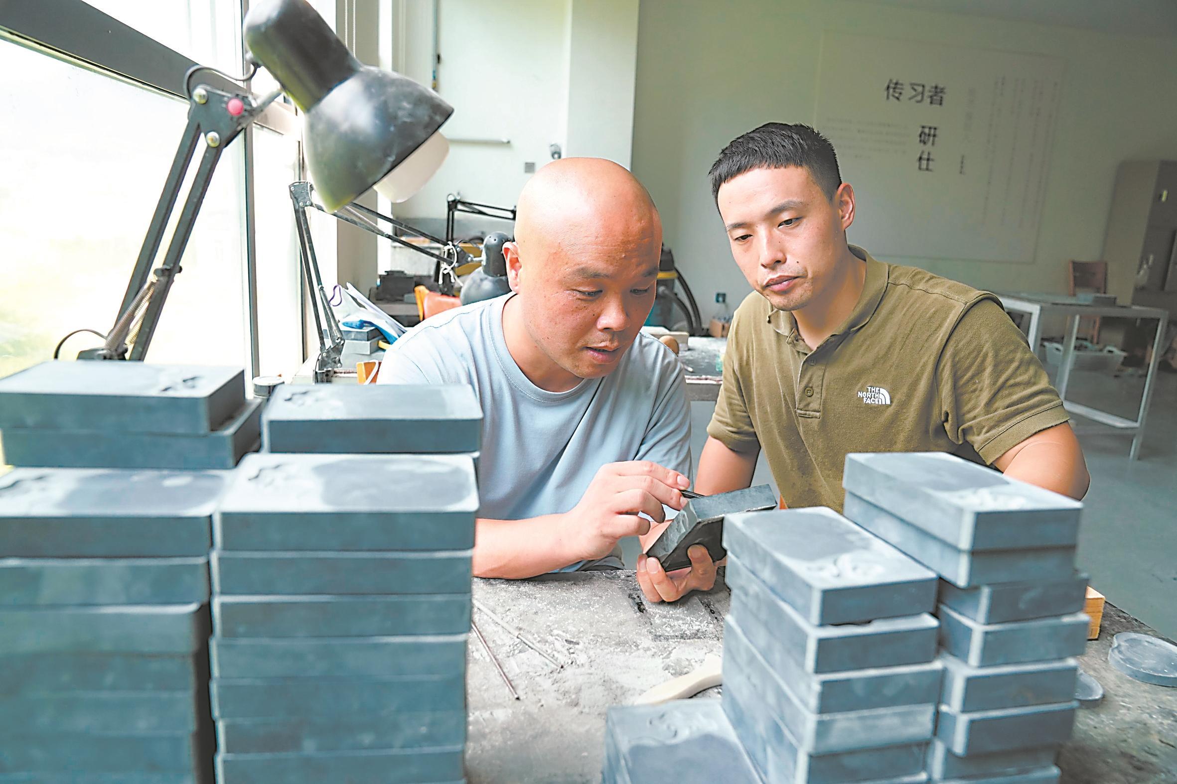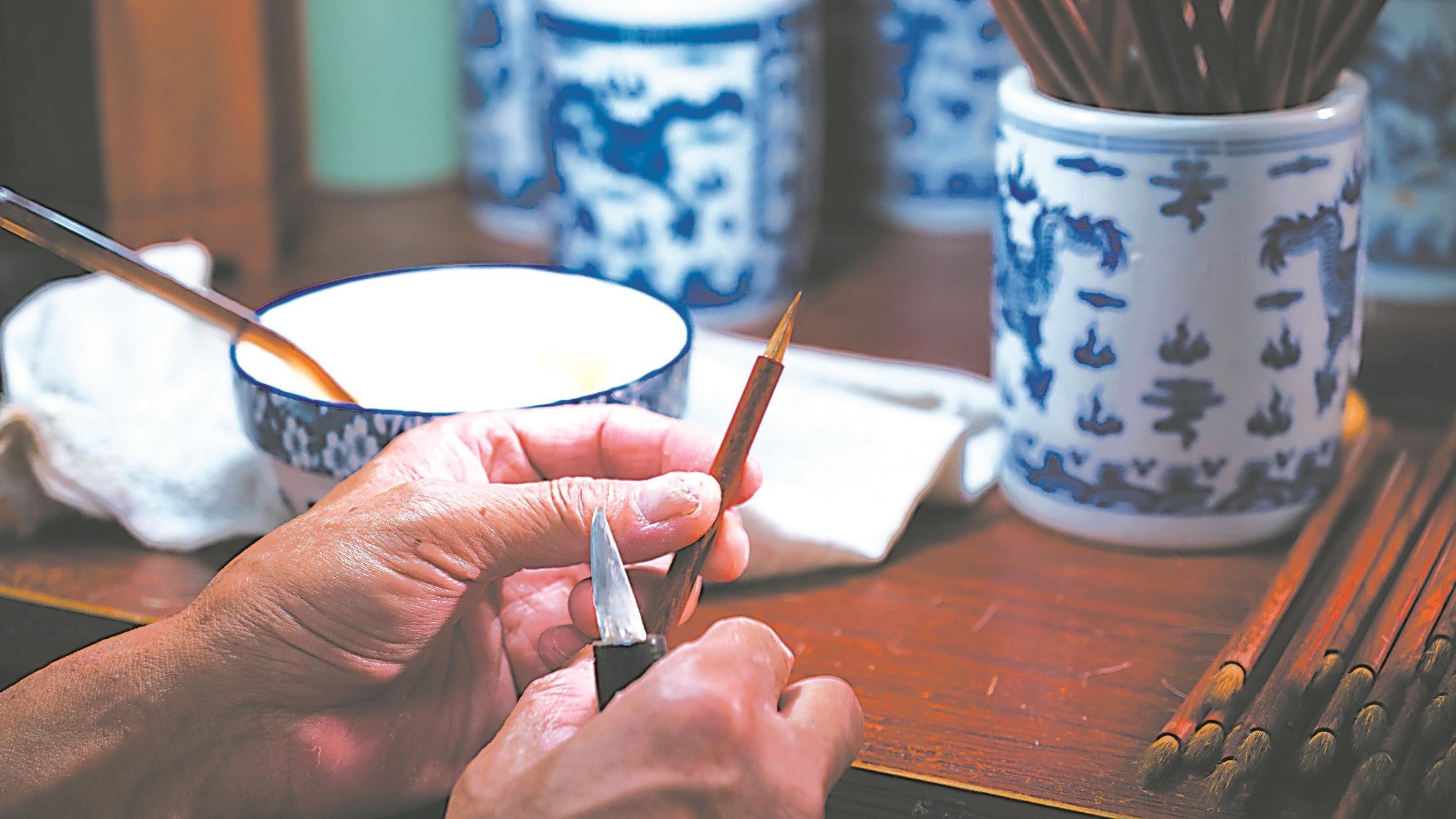 筆 “尖圓齊健”出神韻 7月23日,國家級非物質(zhì)文化遺產(chǎn)“宣筆制作技藝”代表性傳承人佘征軍在安徽省非遺傳習基地展示宣筆制作技藝。 佘征軍在制作宣筆。 7月23日,國家級非物質(zhì)文化遺產(chǎn)“宣筆制作技藝”代表性傳承人佘征軍在安徽省非遺傳習基地展示宣筆制作技藝。 宣筆歷史悠久,源于秦代,盛于唐宋。唐朝在宣城設(shè)宣州總管府,屬制毛筆又主要集中于宣州集散,故因地得名“宣筆”。主要采用山兔毛、山羊毛、黃狼尾毛等為主要原料,經(jīng)過選料、水盆、制桿、裝套、修筆、鑲嵌、刻字、檢驗包裝八大工序一百多個環(huán)節(jié)沉淀,圍繞“尖圓齊健”四大要領(lǐng),一支柔韌相宜、筆勻基固的宣筆才制作成型。從“手藝人”到“守藝人”,佘征軍在宣筆產(chǎn)品創(chuàng)新的路上不斷探索前進。 墨 千錘百煉墨飄香 上圖:7月24日,市級非物質(zhì)文化遺產(chǎn)“徽墨制作技藝”代表性傳承人胡嘉明在上莊鎮(zhèn)的老胡開文墨廠指導員工徽墨古法技藝。下圖:7月24日,市級非物質(zhì)文化遺產(chǎn)“徽墨制作技藝”代表性傳承人胡嘉明在上莊鎮(zhèn)的老胡開文墨廠描金。 7月24日,市級非物質(zhì)文化遺產(chǎn)“徽墨制作技藝”代表性傳承人胡嘉明在上莊鎮(zhèn)的老胡開文墨廠探索徽墨產(chǎn)品創(chuàng)新。 醇煙百煉久,萬杵臼中錘。天下墨業(yè),以徽墨為首。徽墨歷史悠久,因產(chǎn)于古徽州府而得名?;漳现饕炙蔁熀陀蜔焹煞N,其歷經(jīng)煉煙、洗煙、熬膠、拌料、成胚、捶打、定型、晾墨、打磨、描金、雕刻等十多個工序,至少幾個月才能制成光澤如漆的佳墨。上莊鎮(zhèn)上莊村是清代制墨名家胡天柱的故鄉(xiāng),“胡開文”即為胡天柱創(chuàng)辦的徽墨墨莊店號。40年來,胡嘉明潛心研制徽墨,默默堅守胡開文墨業(yè)的金字招牌,在古法制墨的基礎(chǔ)上不斷探索,利用互聯(lián)網(wǎng)銷售優(yōu)勢,并設(shè)立徽墨研學體驗項目,擔當起了弘揚和傳承徽墨文化的責任。 紙 承載古韻壽千年 7月23日,大國工匠、全國五一勞動獎?wù)芦@得者毛勝利和省級非物質(zhì)文化遺產(chǎn)項目宣紙代表性傳承人汪息發(fā)在現(xiàn)場向游客展示宣紙制作這一承載了徽香墨韻的千年古技。 在“中國宣紙之鄉(xiāng)”宣城涇縣的中國宣紙股份有限公司三丈三“超級宣紙”生產(chǎn)車間里,44名技藝精湛的撈紙工匠齊心協(xié)力共同抬起巨型竹簾制作宣紙。 7月23日,在涇縣中國宣紙小鎮(zhèn),大國工匠、全國五一勞動獎?wù)芦@得者毛勝利和省級非物質(zhì)文化遺產(chǎn)項目宣紙代表性傳承人汪息發(fā)向游客展示宣紙制作這一承載了徽香墨韻的千年古技。 宣紙,始于唐代,發(fā)源于安徽省宣城市涇縣,距今已有1500余年歷史。青檀樹皮、沙田稻草,歷經(jīng)清洗、蒸煮、晾曬、揀選、捶搗、切割……108道工序,終成經(jīng)久不脆、吸水潤墨、不蛀不腐的千年壽紙。 毛勝利介紹,“水深火熱”是宣紙的兩大關(guān)鍵環(huán)節(jié)。“水深”就是撈紙,“火熱”則是曬紙。用竹篾編成的紙簾在漿水中撈提,兩個撈紙工需要高度協(xié)調(diào),才能保證每張紙的厚薄均勻。曬紙則是撈紙后的一道工序,先將架子上濕漉漉的宣紙揭下來,再將宣紙一張張分開,“曬”在加熱的鋼板焙面,最后用松針刷將紙慢慢刷平。2006年,宣紙制作技藝被列入首批國家級非遺。2009年,宣紙制作技藝被聯(lián)合國教科文組織列入人類非物質(zhì)文化遺產(chǎn)代表作名錄。 硯 雕琢之間綻芳華 7月24日,宣城市非物質(zhì)文化遺產(chǎn)宣硯制作技藝傳承人黃瑞正在和宣城市工藝美術(shù)大師張明探討禮品硯臺的制作。 7月24日,宣城市非物質(zhì)文化遺產(chǎn)宣硯制作技藝傳承人黃瑞正在展示宣硯制作技藝。 7月24日,宣城市非物質(zhì)文化遺產(chǎn)宣硯制作技藝傳承人黃瑞正在和宣城市工藝美術(shù)大師張明探討禮品硯臺的制作。 宣硯有著悠久的歷史,具有精湛的工藝和卓越的品質(zhì),是宣城市打造“中國文房四寶之城”不可或缺的板塊。2014年,旌德縣被中國輕工業(yè)聯(lián)合會和中國文房四寶協(xié)會授予“中國宣硯之鄉(xiāng)”特色區(qū)域稱號。近年來,旌德縣按照“創(chuàng)造性轉(zhuǎn)化、創(chuàng)新性發(fā)展”要求,依托宣硯文化賦能產(chǎn)業(yè)發(fā)展,取得了良好成效。 黃瑞介紹,宣硯制作技藝包括采石、選料、設(shè)計、制坯、雕刻、打磨、銘文、護養(yǎng)、配盒九大環(huán)節(jié)、40多道工序,每道工序均有詳細的技術(shù)指標和制作要求。2017年,宣硯制作技藝被錄入安徽省非物質(zhì)文化遺產(chǎn)名錄。作為一名傳承人一定守護好這門手藝,讓它在自己的手中發(fā)揚光大。 |