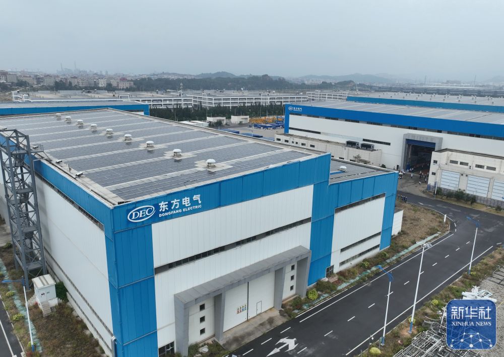 ↑福建三峽海上風(fēng)電國(guó)際產(chǎn)業(yè)園內(nèi)東方電氣風(fēng)電(福建)有限公司生產(chǎn)基地一角(2023年11月10日攝,無(wú)人機(jī)照片)。