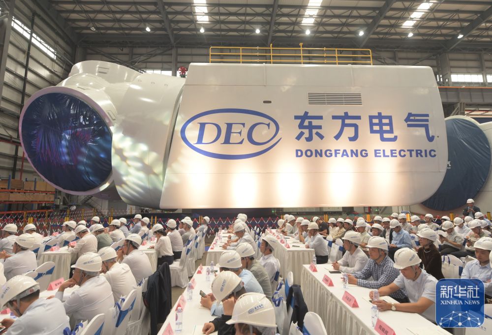 ↑2023年11月10日,18兆瓦直驅(qū)海上風(fēng)電機(jī)組在福建三峽海上風(fēng)電國(guó)際產(chǎn)業(yè)園下線。