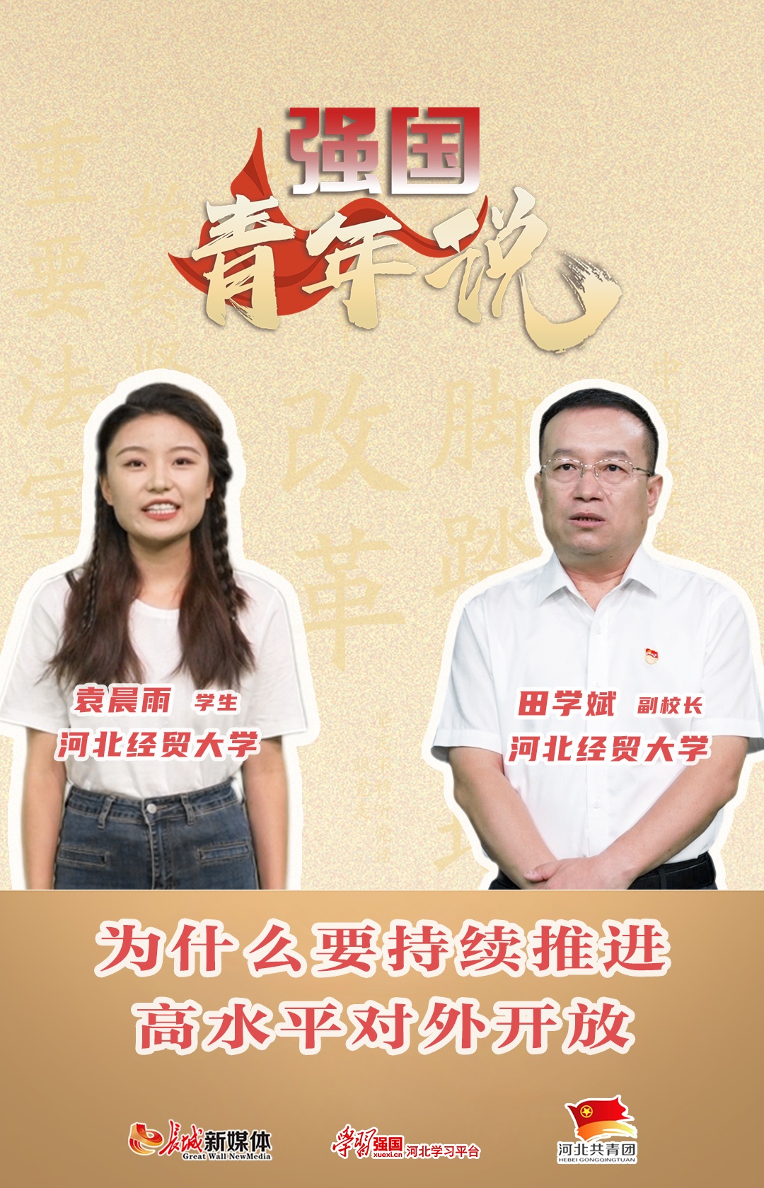 開放是中國(guó)式現(xiàn)代化的鮮明標(biāo)識(shí)。黨的二十屆三中全會(huì)就完善高水平對(duì)外開放體制機(jī)制作出系統(tǒng)部署,明確提出以開放促改革,建設(shè)更高水平開放型經(jīng)濟(jì)新體制。 未來我們的國(guó)家將如何同世界打交道?更高水平的開放型經(jīng)濟(jì)新體制,又會(huì)給青年帶來哪些機(jī)遇呢? 《強(qiáng)國(guó)青年說》第三期,一起聆聽河北經(jīng)貿(mào)大學(xué)副校長(zhǎng)田學(xué)斌教授的精彩解讀。 總策劃:王悅路 侯貴松 策 劃:邵 荃 李 遙 吳湘鋒 監(jiān) 制:翟 新 李 崢 馬 勇 統(tǒng) 籌:梁成棟 尹斯祺 編 導(dǎo):曹 茜 文 案:梁成棟 攝 像:劉佩堯 后 期:曹 茜 海 報(bào):劉佩堯 出 品:長(zhǎng)城新媒體集團(tuán) “學(xué)習(xí)強(qiáng)國(guó)”河北學(xué)習(xí)平臺(tái) 共青團(tuán)河北省委 |