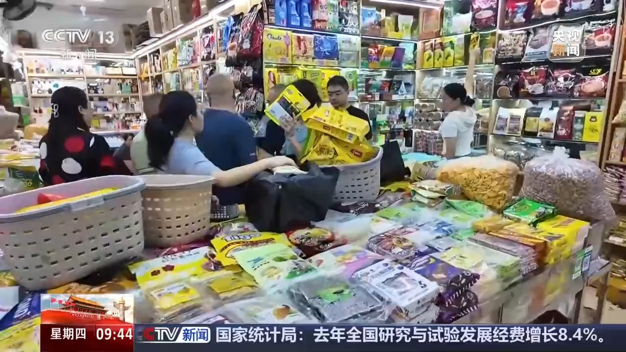 在東興的街邊店鋪里,各種越南特色的零食和調(diào)味品、工藝品五花八門,在這里記者感受到了各路游客的購買力。
